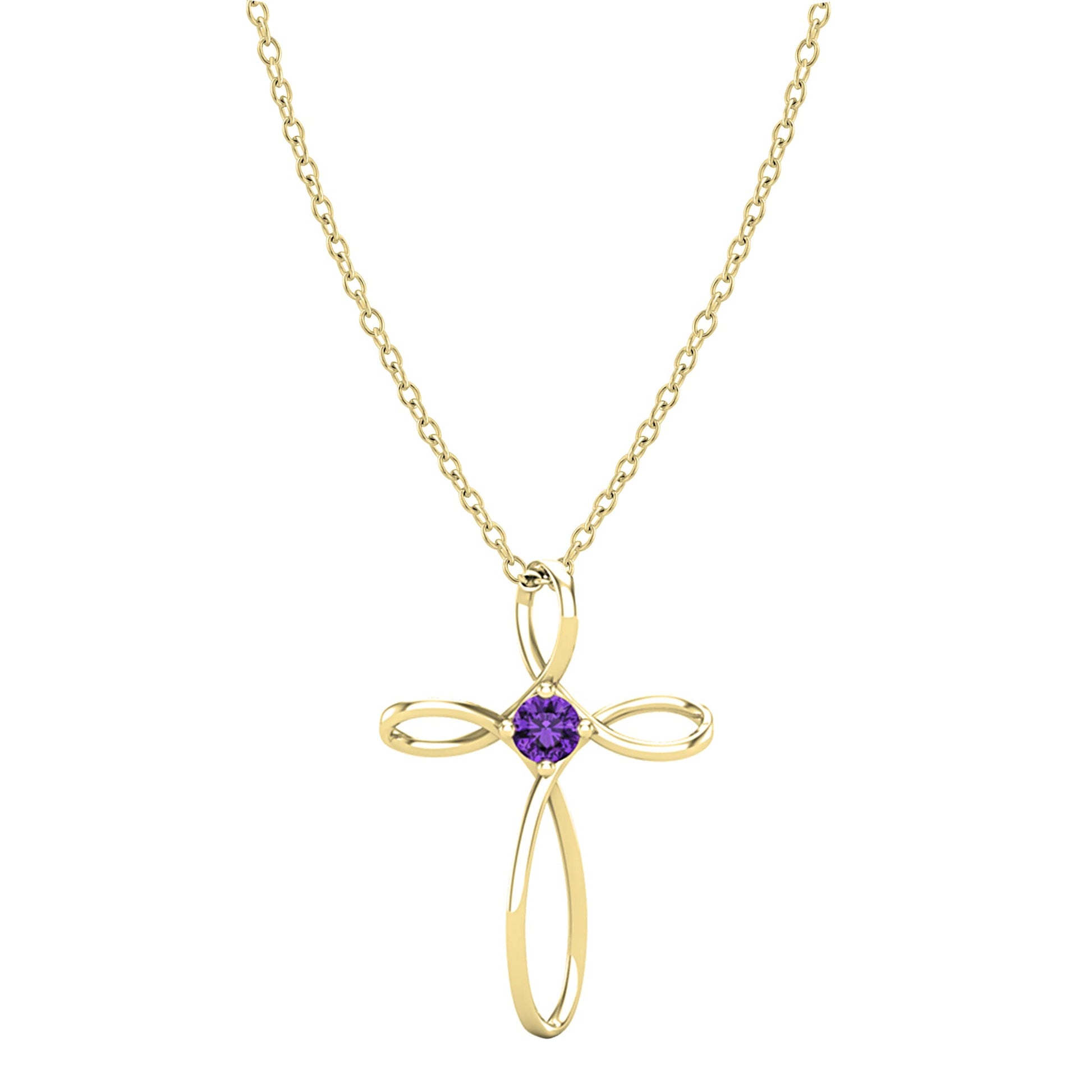 Dazzlingrock Collection 4mm Round Amethyst Solitaire Twisted Criss Cross Pendant with 18 inch Gold Chain for Women in 18K Yellow Gold