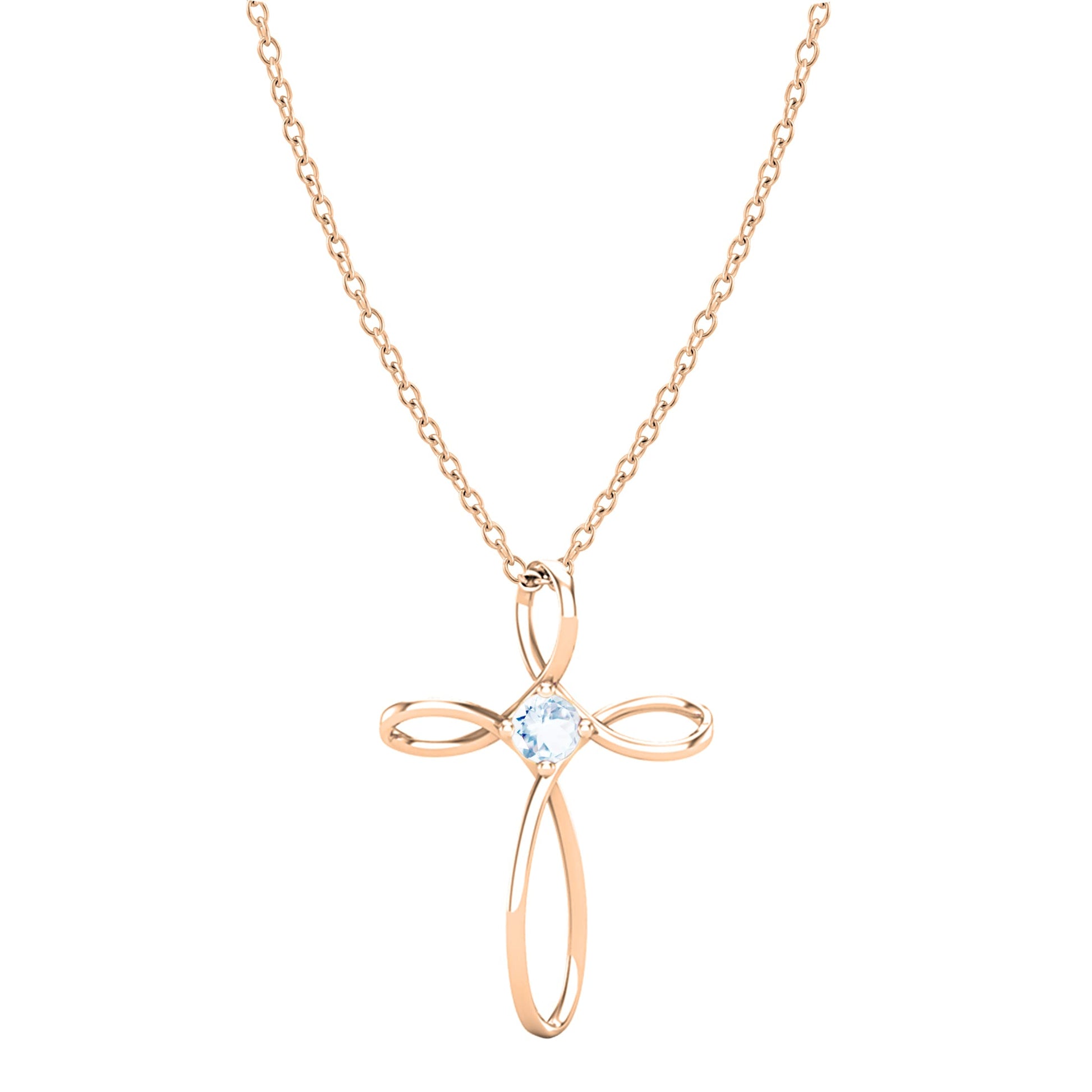 Dazzlingrock Collection 4mm Round Aquamarine Solitaire Twisted Criss Cross Pendant with 18 inch Gold Chain for Women in 14K Rose Gold