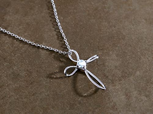 Dazzlingrock Collection 4mm Round Aquamarine Solitaire Twisted Criss Cross Pendant with 18 inch Gold Chain for Women in 18K White Gold