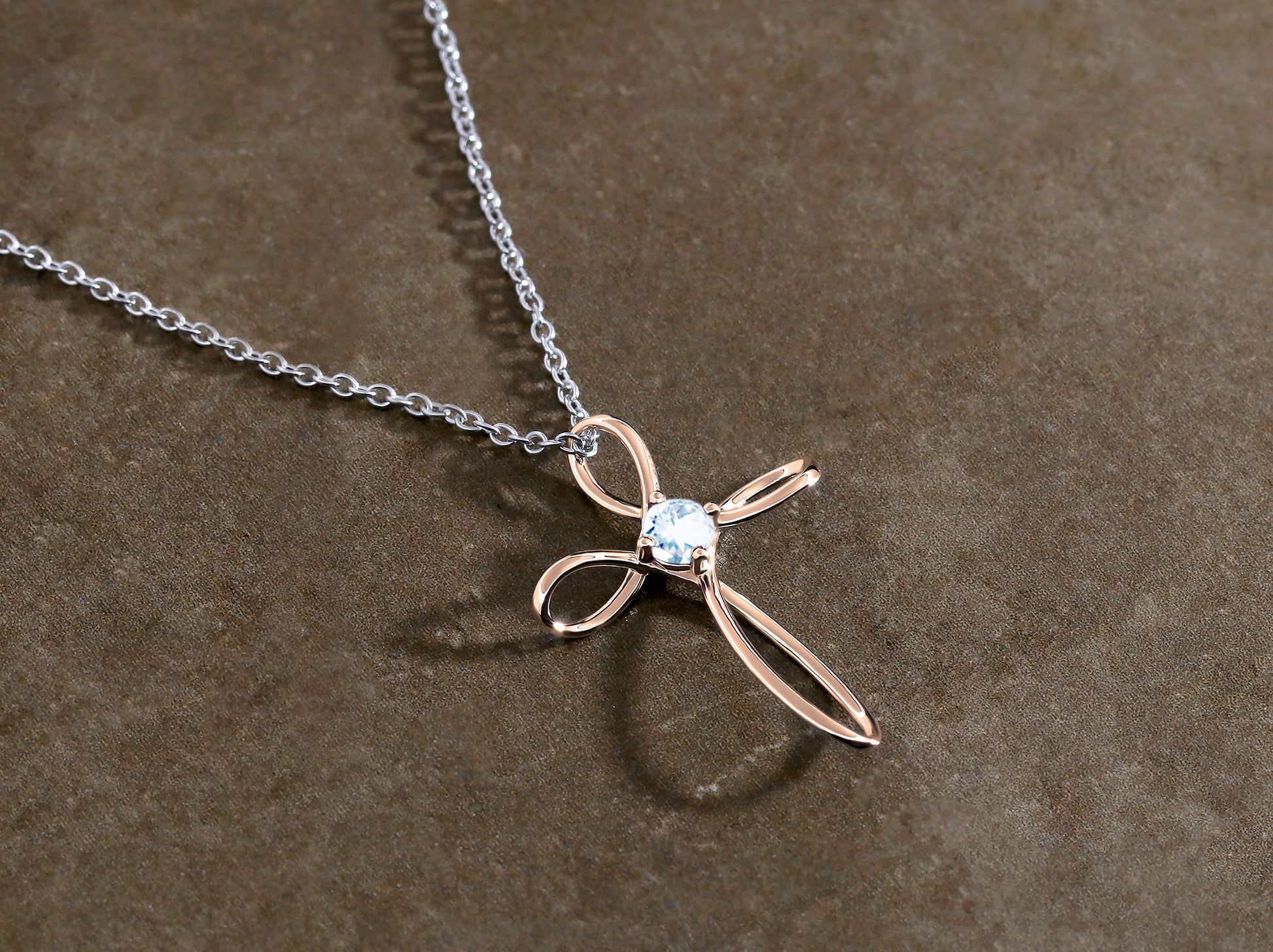 Dazzlingrock Collection 4mm Round Aquamarine Solitaire Twisted Criss Cross Pendant with 18 inch Silver Chain for Women in 10K Rose Gold