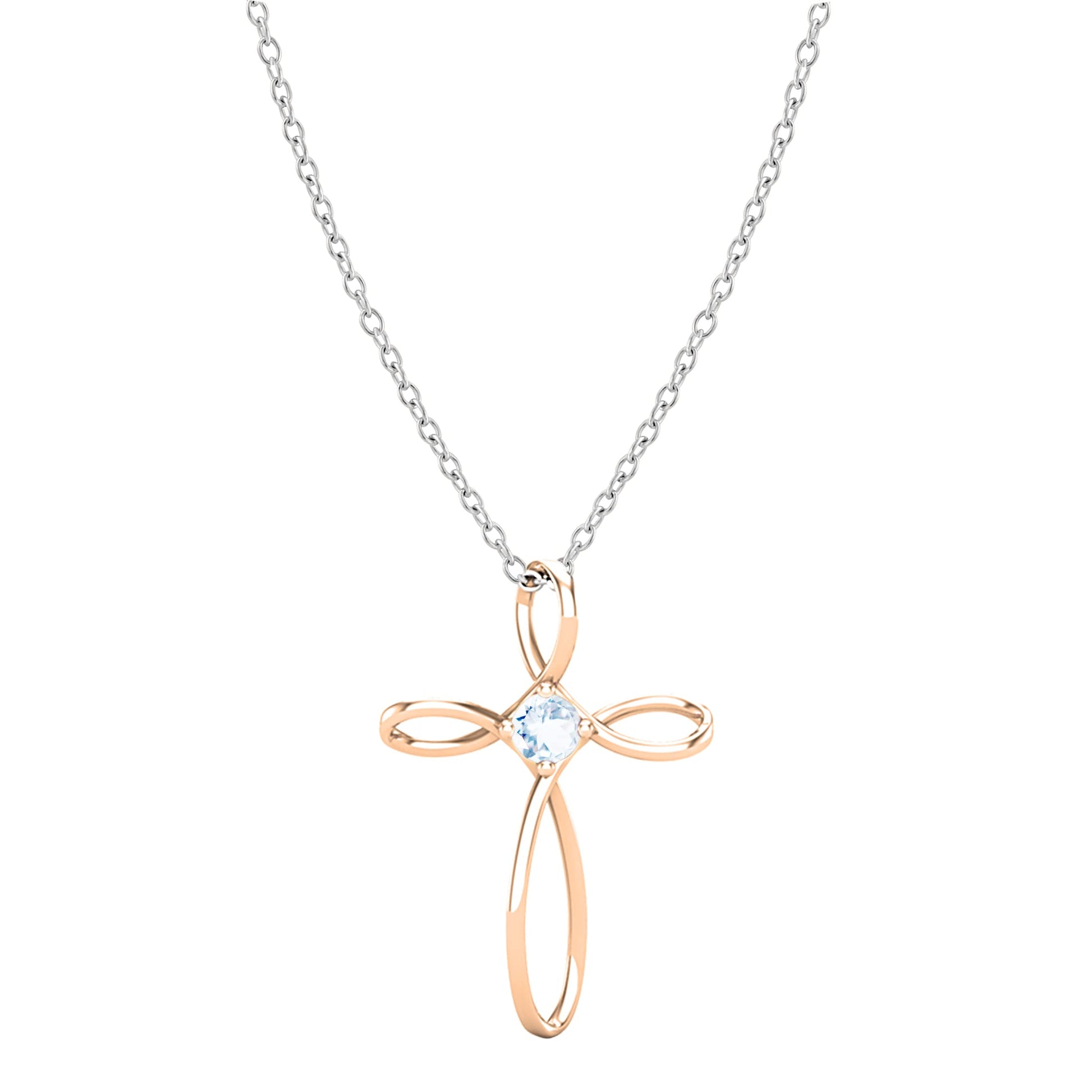 Dazzlingrock Collection 4mm Round Aquamarine Solitaire Twisted Criss Cross Pendant with 18 inch Silver Chain for Women in 18K Rose Gold