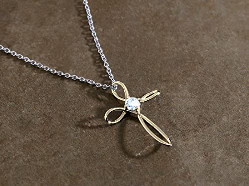 Dazzlingrock Collection 4mm Round Aquamarine Solitaire Twisted Criss Cross Pendant with 18 inch Silver Chain for Women in 18K Yellow Gold