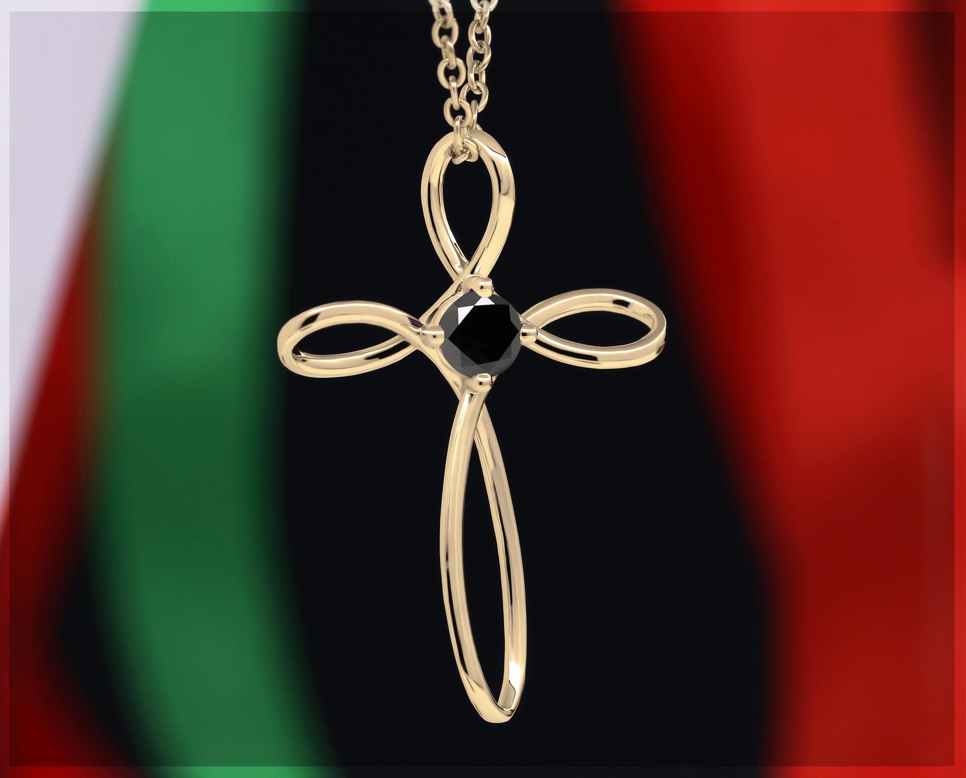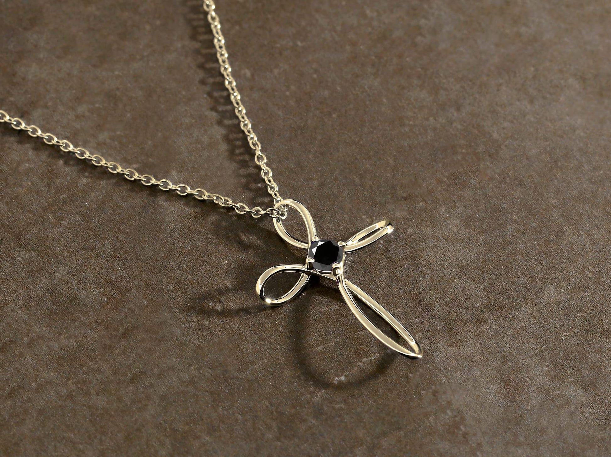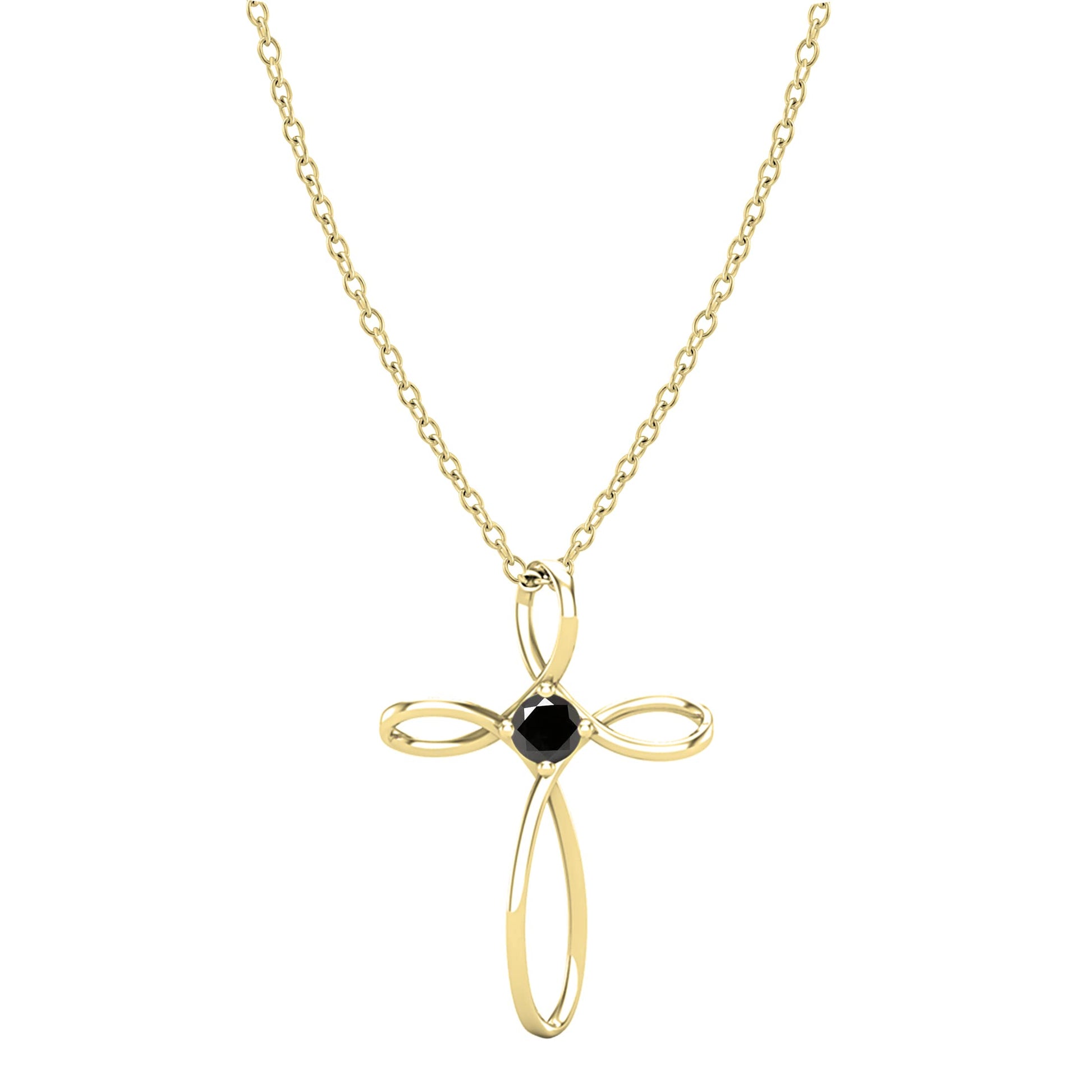 Dazzlingrock Collection 4mm Round Black Diamond Solitaire Twisted Criss Cross Pendant with 18 inch Gold Chain for Women (0.25 ctw, Color Black, Clarity Opaque) in 10K Yellow Gold