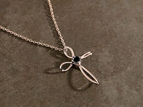 Dazzlingrock Collection 4mm Round Black Diamond Solitaire Twisted Criss Cross Pendant with 18 inch Gold Chain for Women (0.25 ctw, Color Black, Clarity Opaque) in 18K Rose Gold