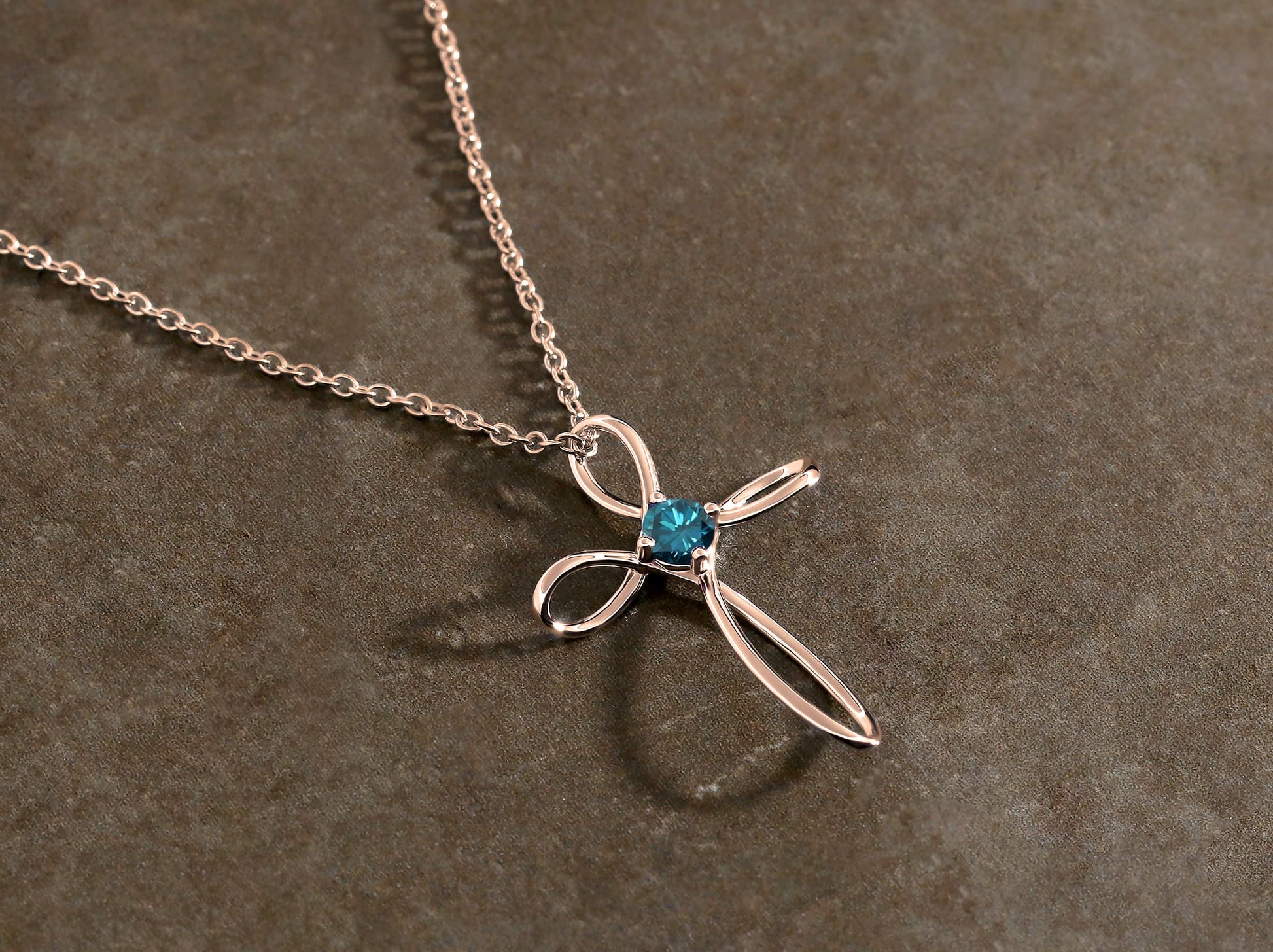 Dazzlingrock Collection 4mm Round Blue Diamond Solitaire Twisted Criss Cross Pendant with 18 inch Gold Chain for Women (0.25 ctw, Color Blue, Clarity I2-I3) in 10K Rose Gold