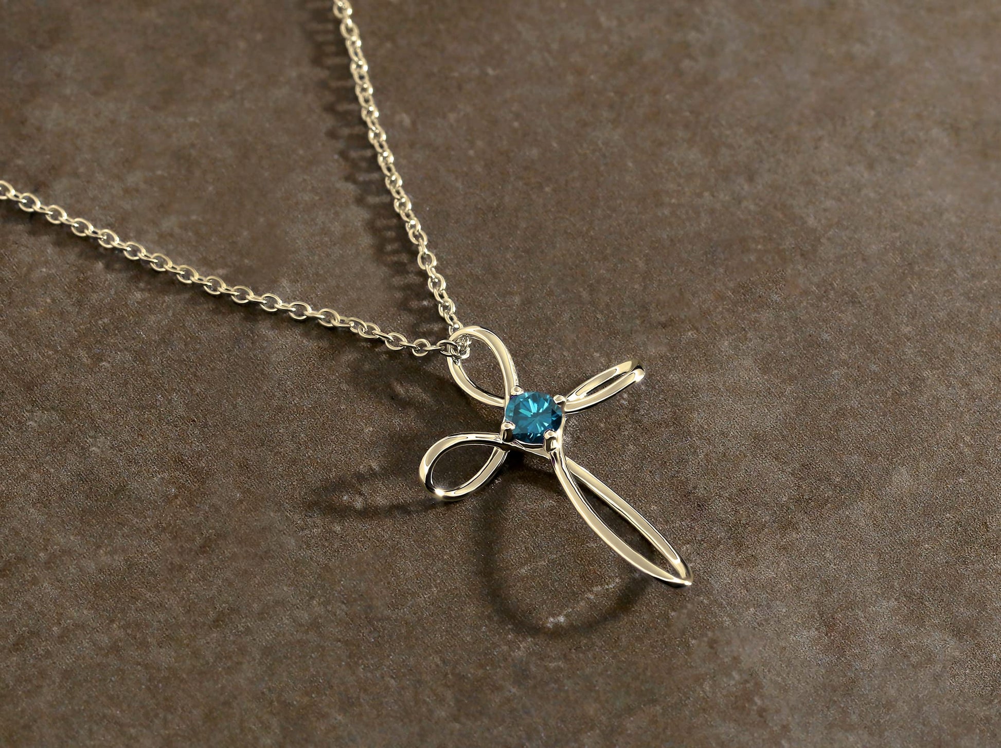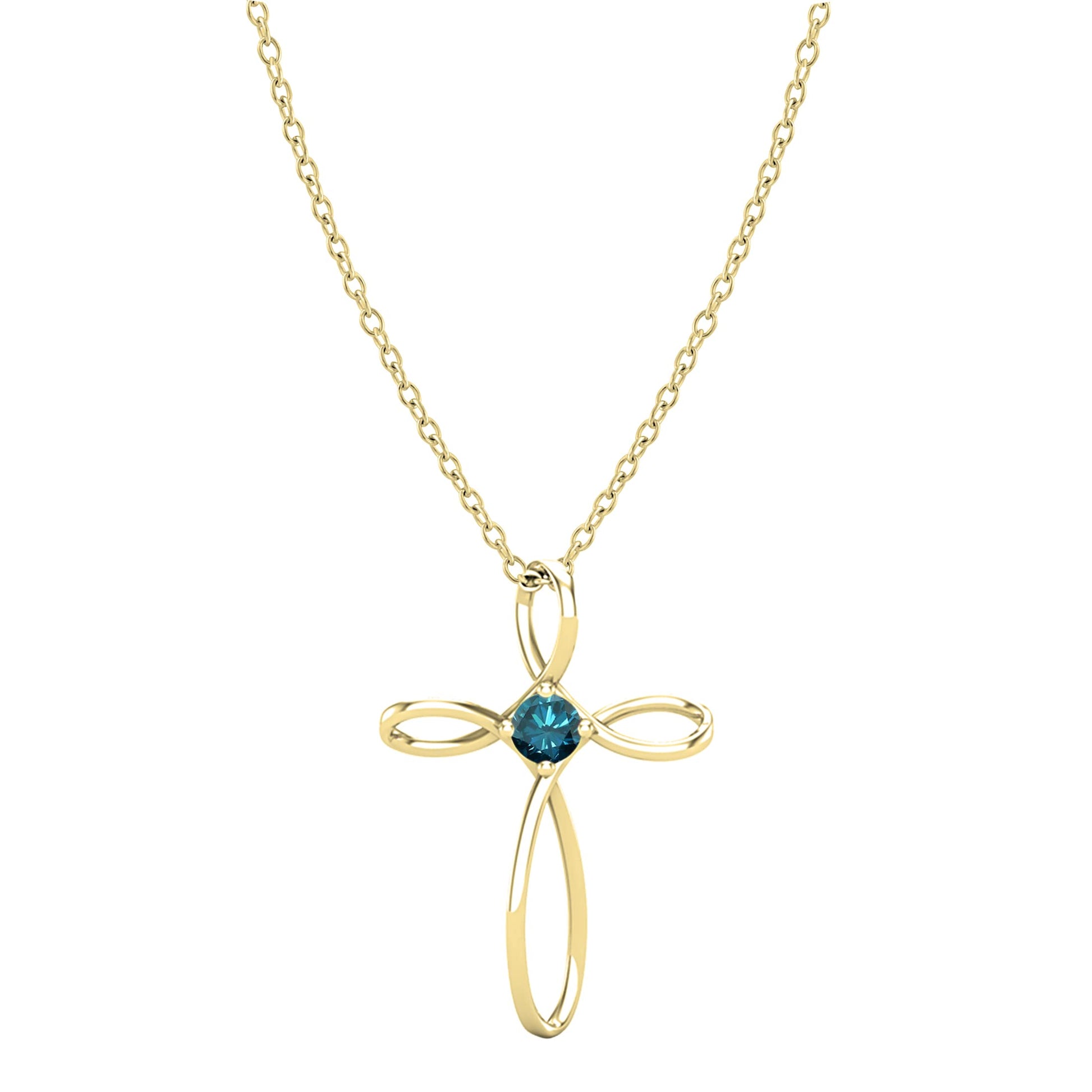 Dazzlingrock Collection 4mm Round Blue Diamond Solitaire Twisted Criss Cross Pendant with 18 inch Gold Chain for Women (0.25 ctw, Color Blue, Clarity I2-I3) in 10K Yellow Gold