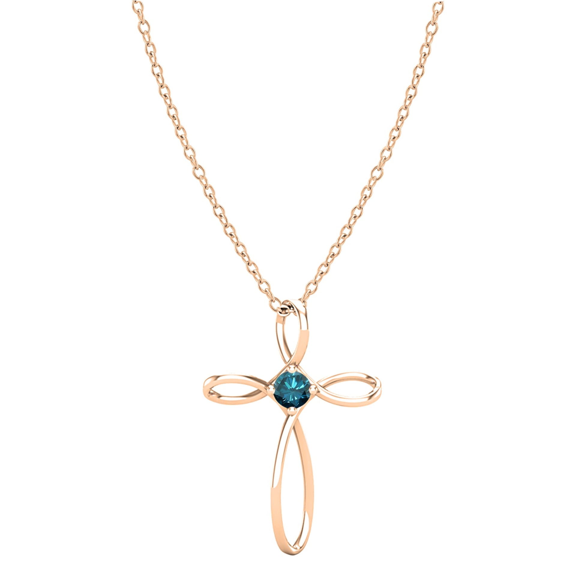 Dazzlingrock Collection 4mm Round Blue Diamond Solitaire Twisted Criss Cross Pendant with 18 inch Gold Chain for Women (0.25 ctw, Color Blue, Clarity I2-I3) in 14K Rose Gold