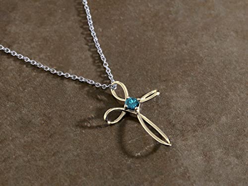 Dazzlingrock Collection 4mm Round Blue Diamond Solitaire Twisted Criss Cross Pendant with 18 inch Silver Chain for Women (0.25 ctw, Color Blue, Clarity I2-I3) in 14K Yellow Gold