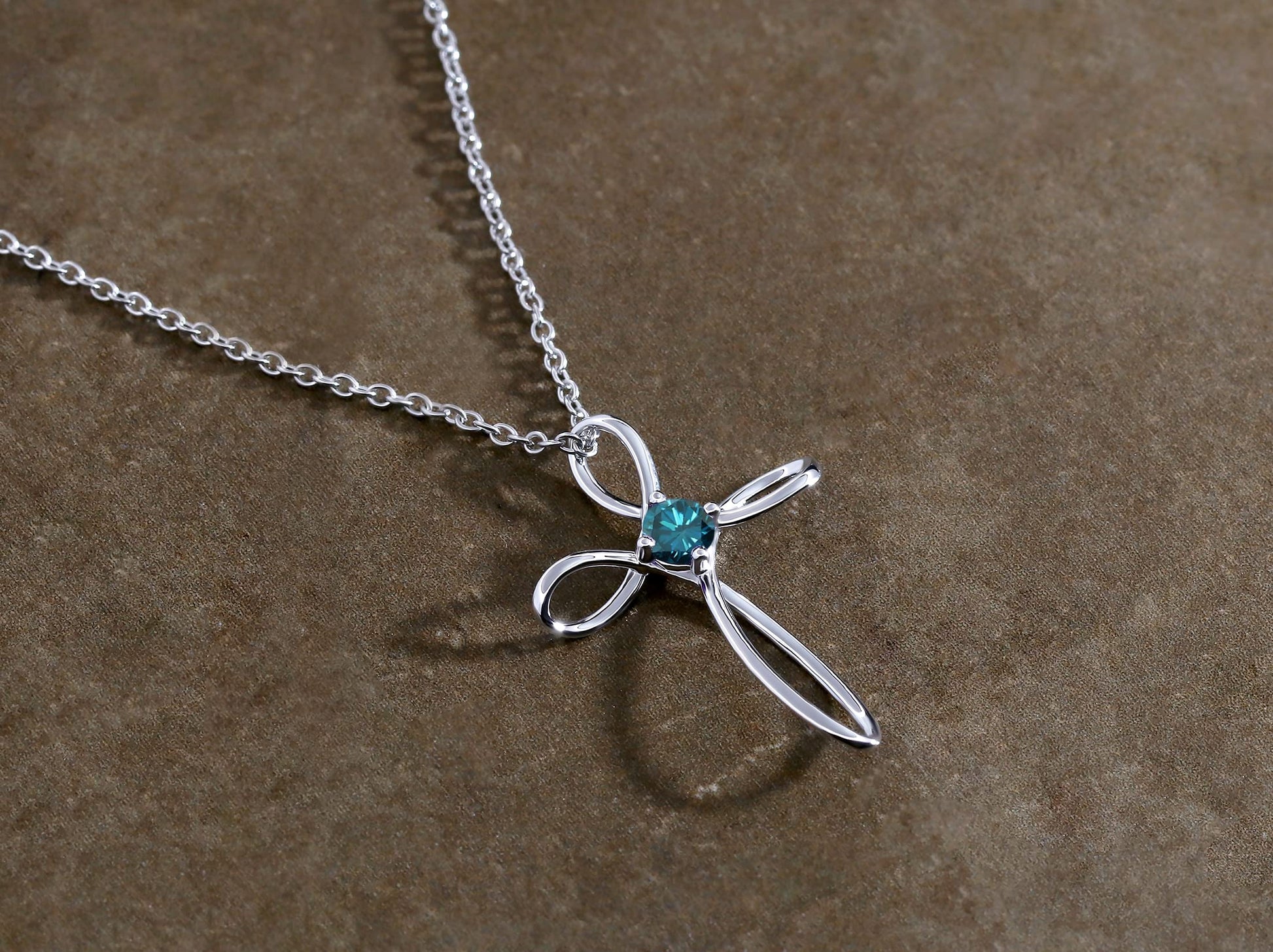• This lovely Solitaire Twisted Criss Cross Pendant features 4mm Round Natural Blue Diamond(s) in Prong Setting.