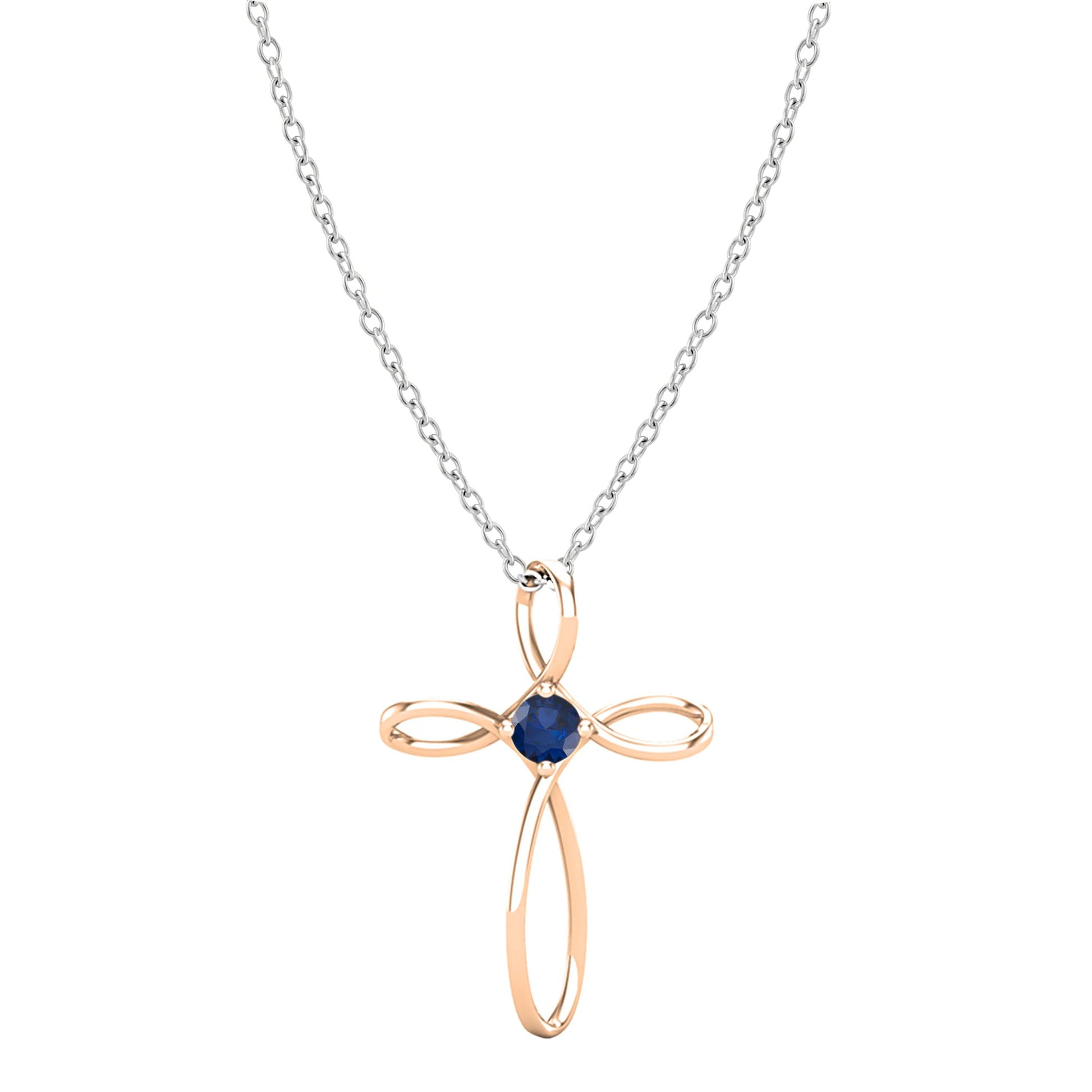 Dazzlingrock Collection 4mm Round Blue Sapphire Solitaire Twisted Criss Cross Pendant with 18 inch Silver Chain for Women in 14K Rose Gold