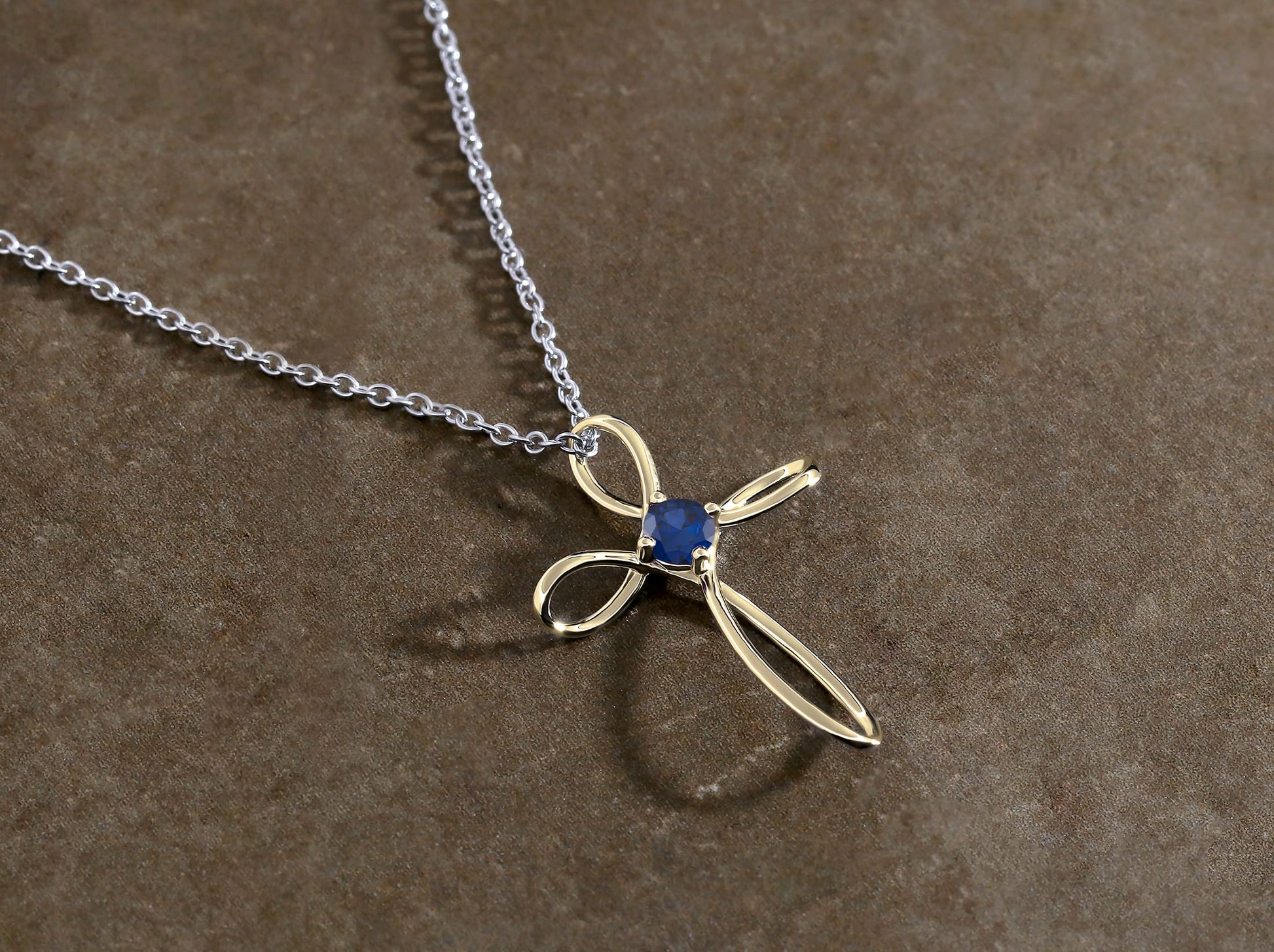 Dazzlingrock Collection 4mm Round Blue Sapphire Solitaire Twisted Criss Cross Pendant with 18 inch Silver Chain for Women in 14K Yellow Gold