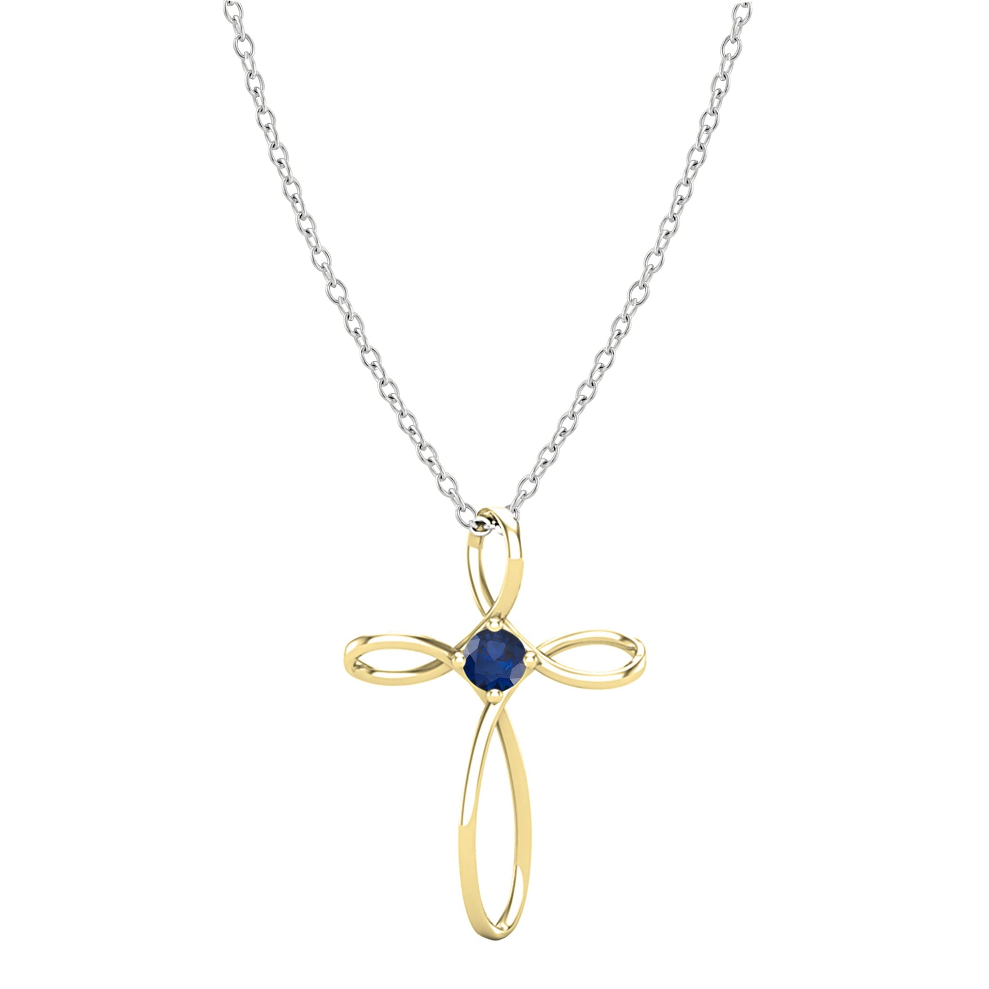 Dazzlingrock Collection 4mm Round Blue Sapphire Solitaire Twisted Criss Cross Pendant with 18 inch Silver Chain for Women in 14K Yellow Gold