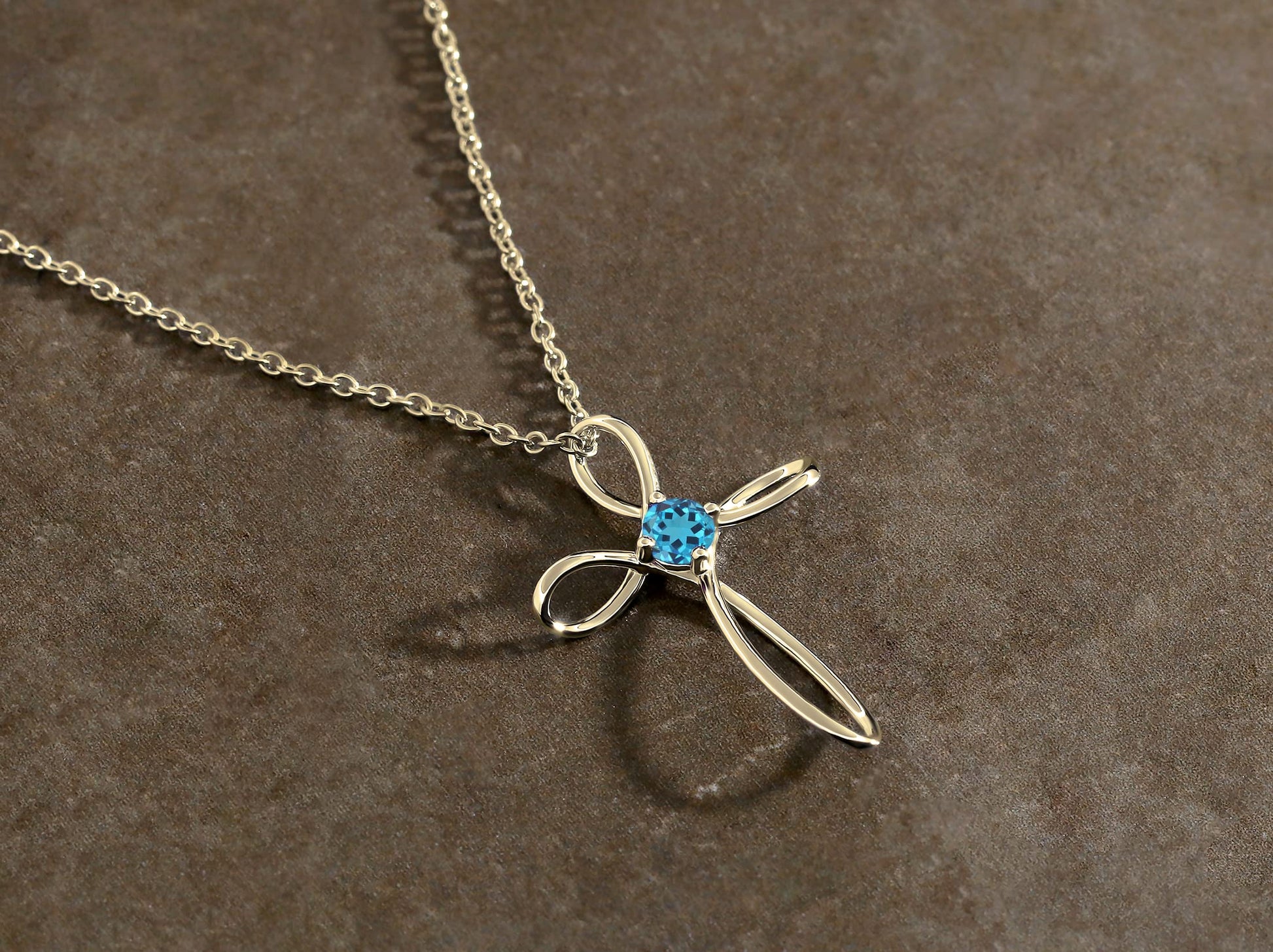 Dazzlingrock Collection 4mm Round Blue Topaz Solitaire Twisted Criss Cross Pendant with 18 inch Gold Chain for Women in 10K Yellow Gold