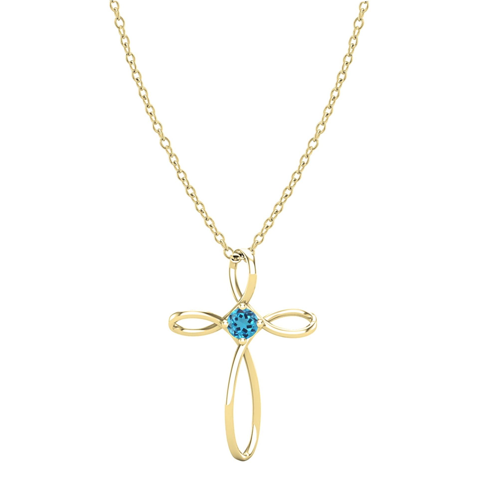 Dazzlingrock Collection 4mm Round Blue Topaz Solitaire Twisted Criss Cross Pendant with 18 inch Gold Chain for Women in 14K Yellow Gold