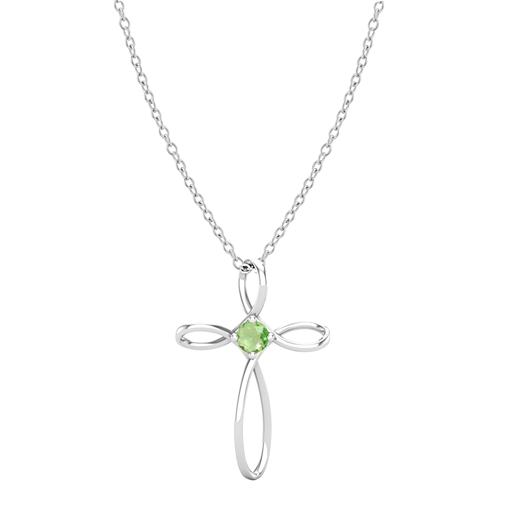 Dazzlingrock Collection 4mm Round Peridot Solitaire Twisted Criss Cross Pendant with 18 inch Silver Chain for Women in 10K White Gold