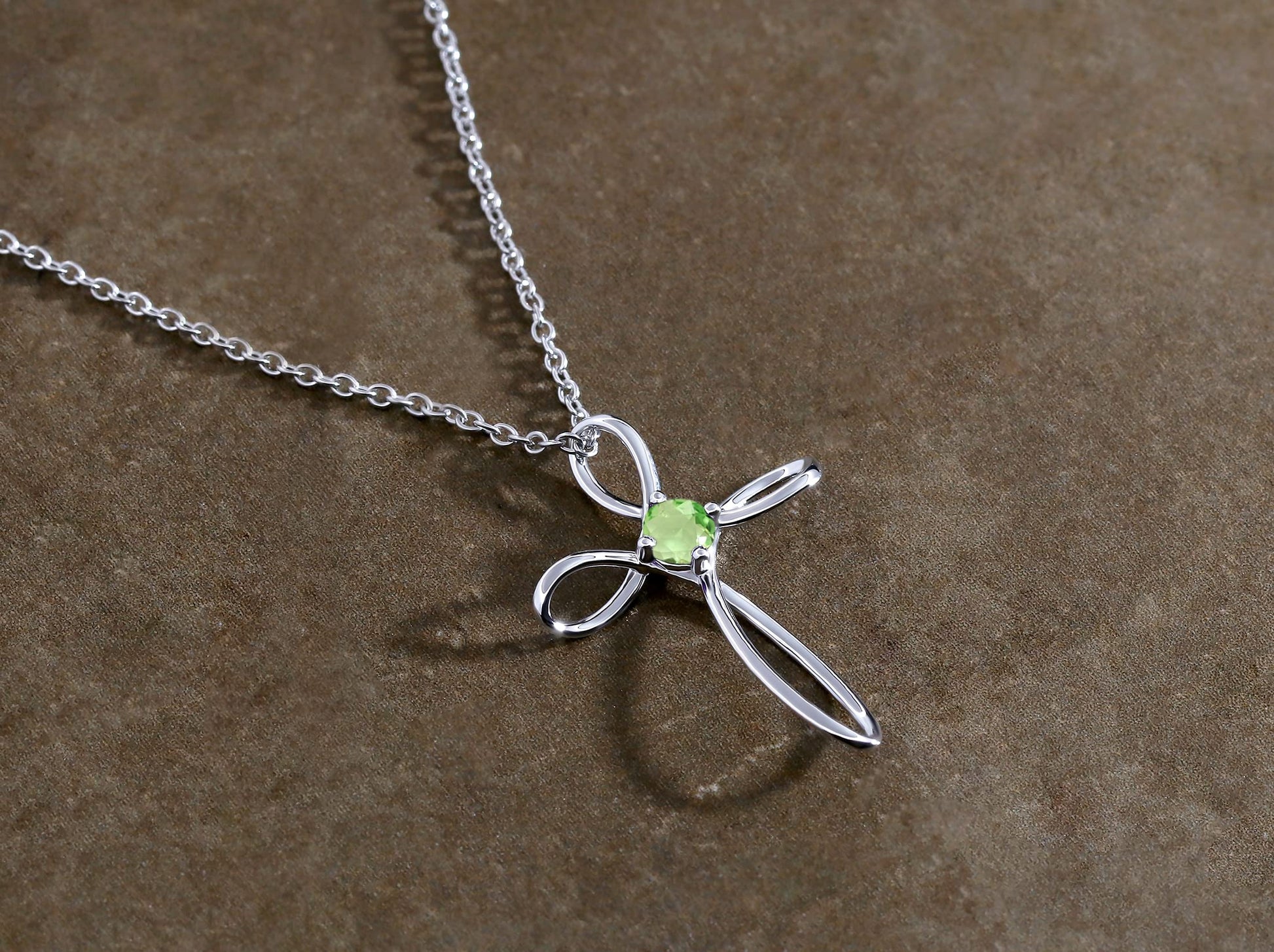 • This lovely Solitaire Twisted Criss Cross Pendant features 4mm Round Natural Peridot(s) in Prong Setting.