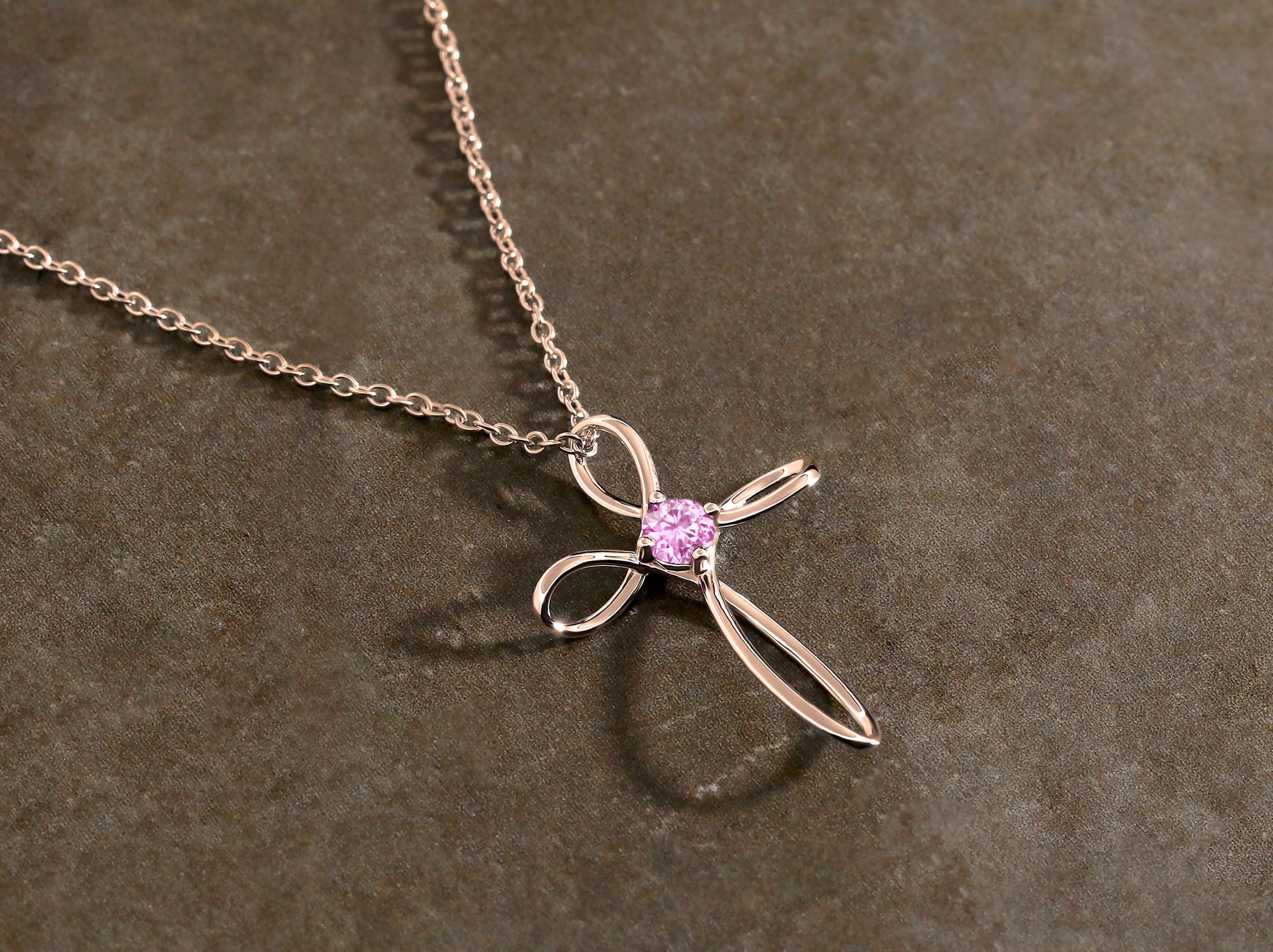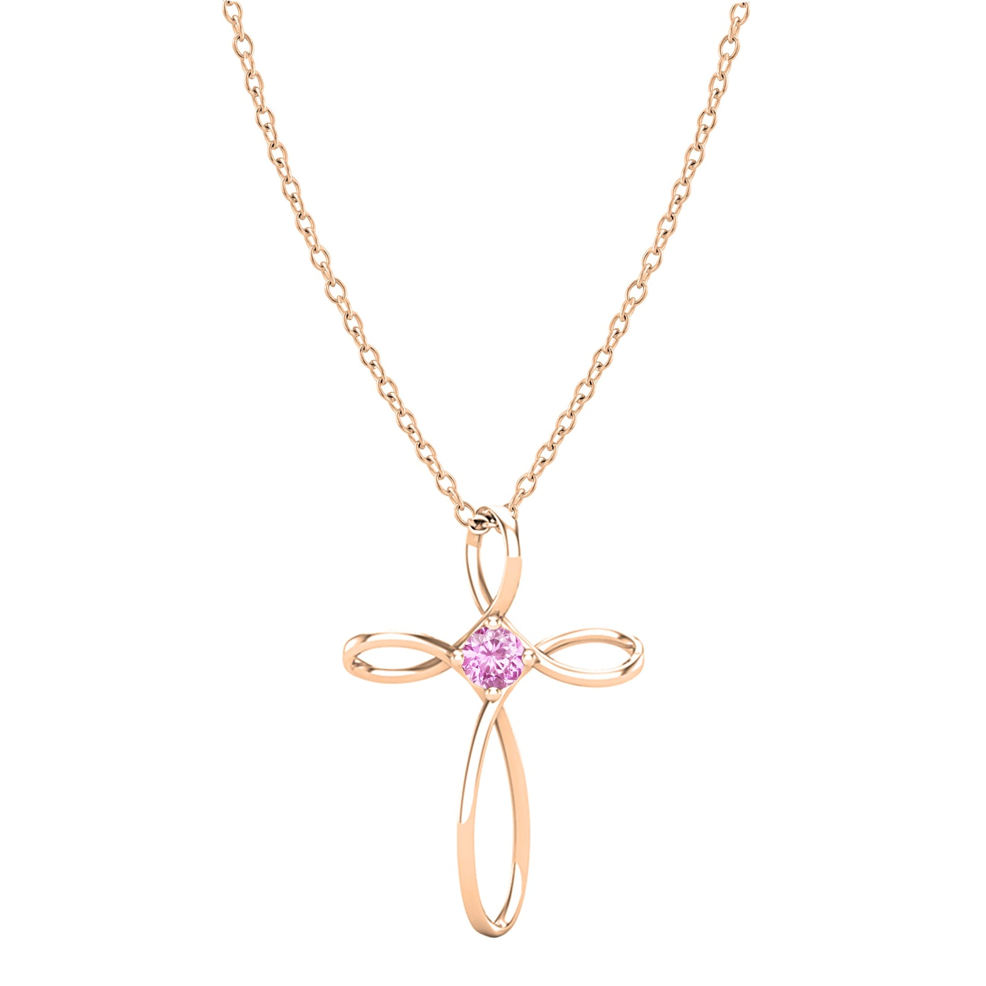 Dazzlingrock Collection 4mm Round Pink Sapphire Solitaire Twisted Criss Cross Pendant with 18 inch Gold Chain for Women in 18K Rose Gold