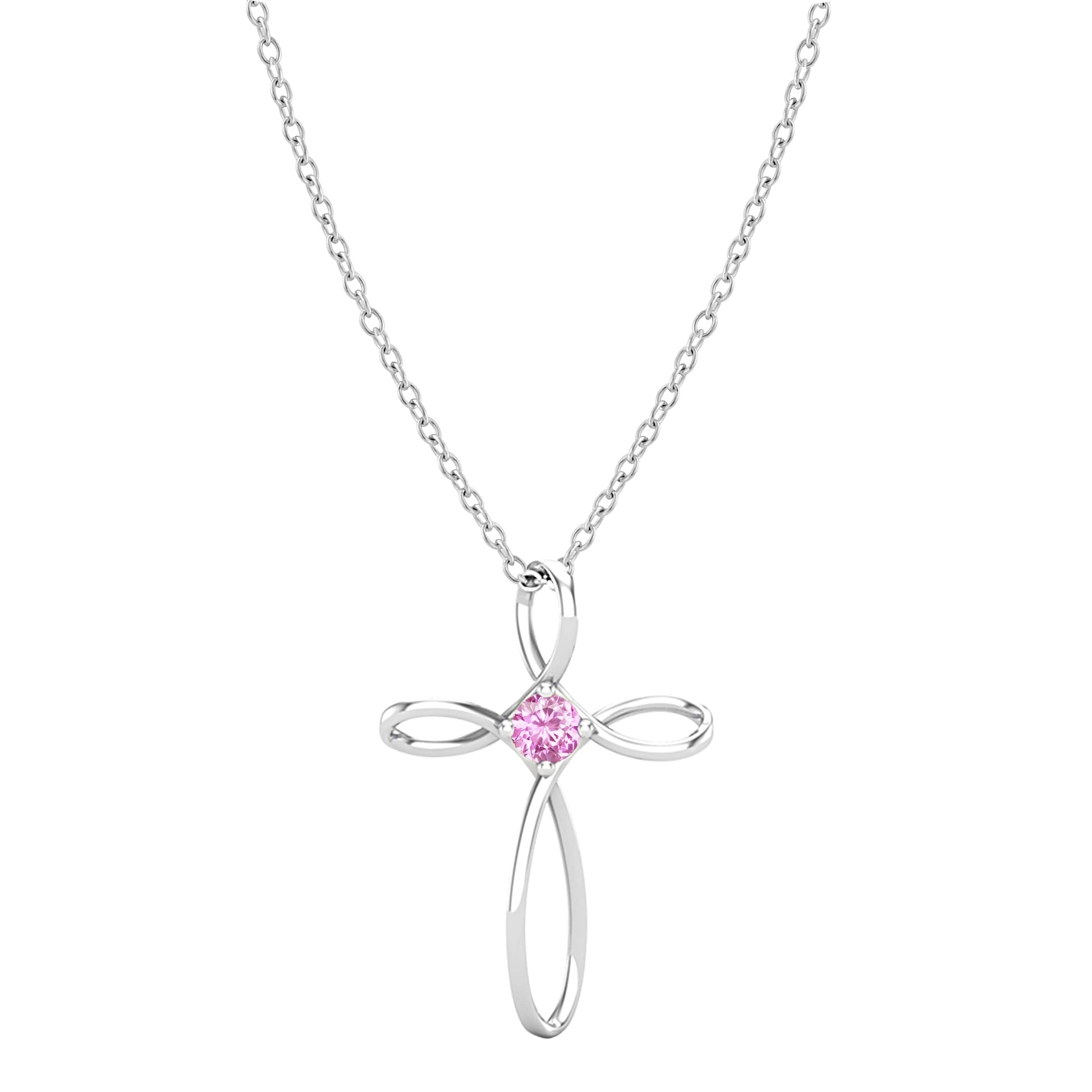 Dazzlingrock Collection 4mm Round Pink Sapphire Solitaire Twisted Criss Cross Pendant with 18 inch Gold Chain for Women in 18K White Gold