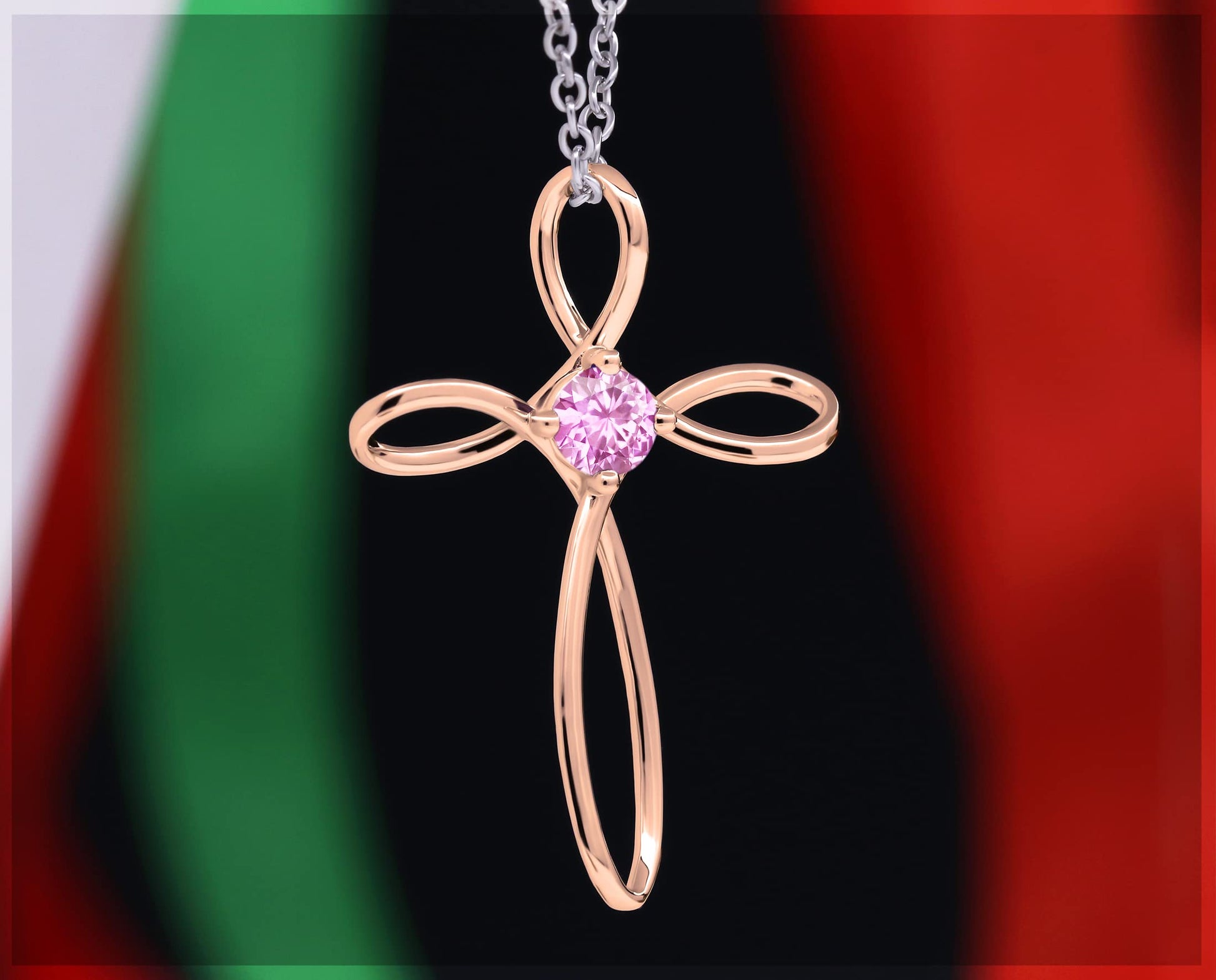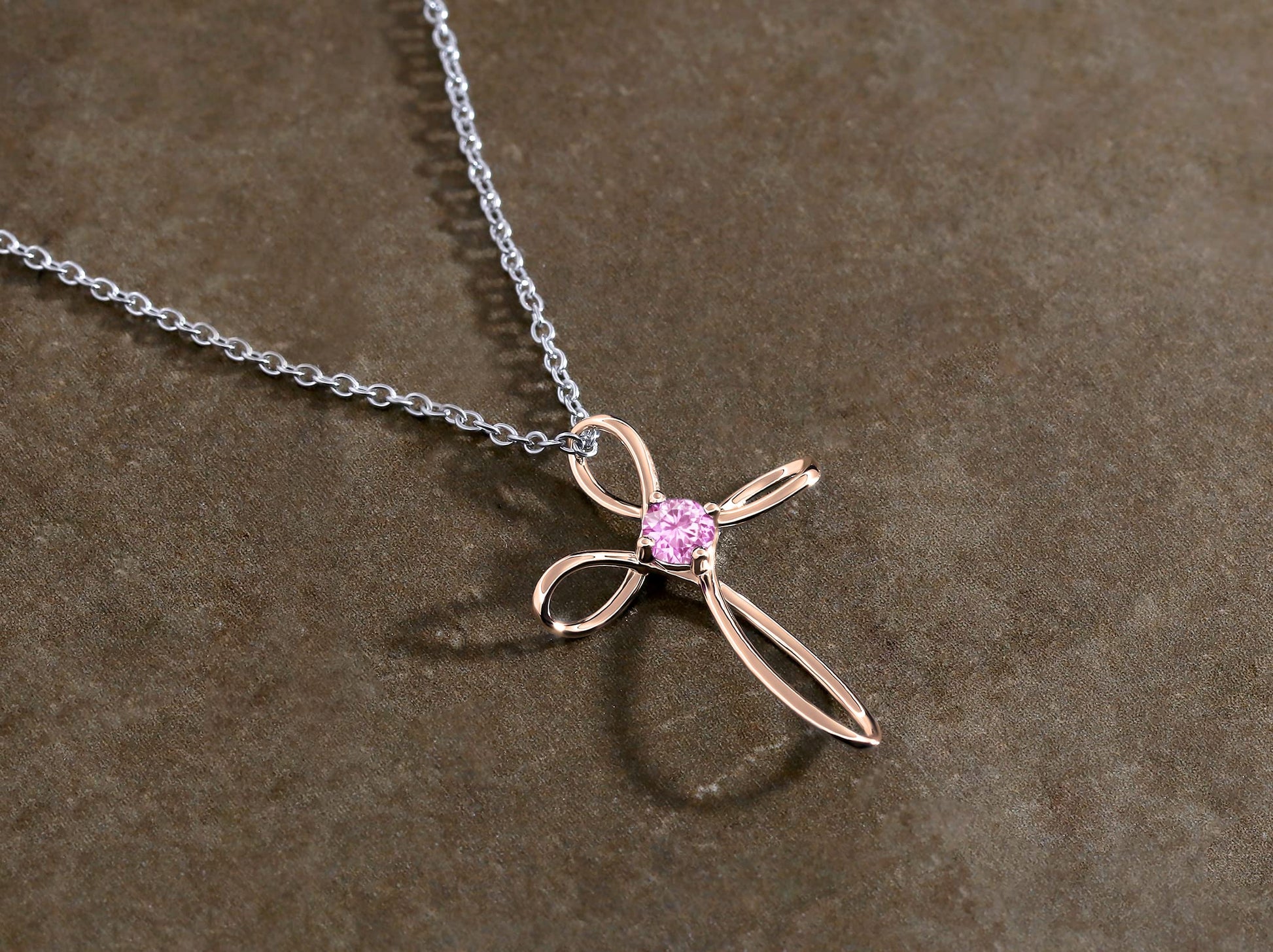 Dazzlingrock Collection 4mm Round Pink Sapphire Solitaire Twisted Criss Cross Pendant with 18 inch Silver Chain for Women in 18K Rose Gold