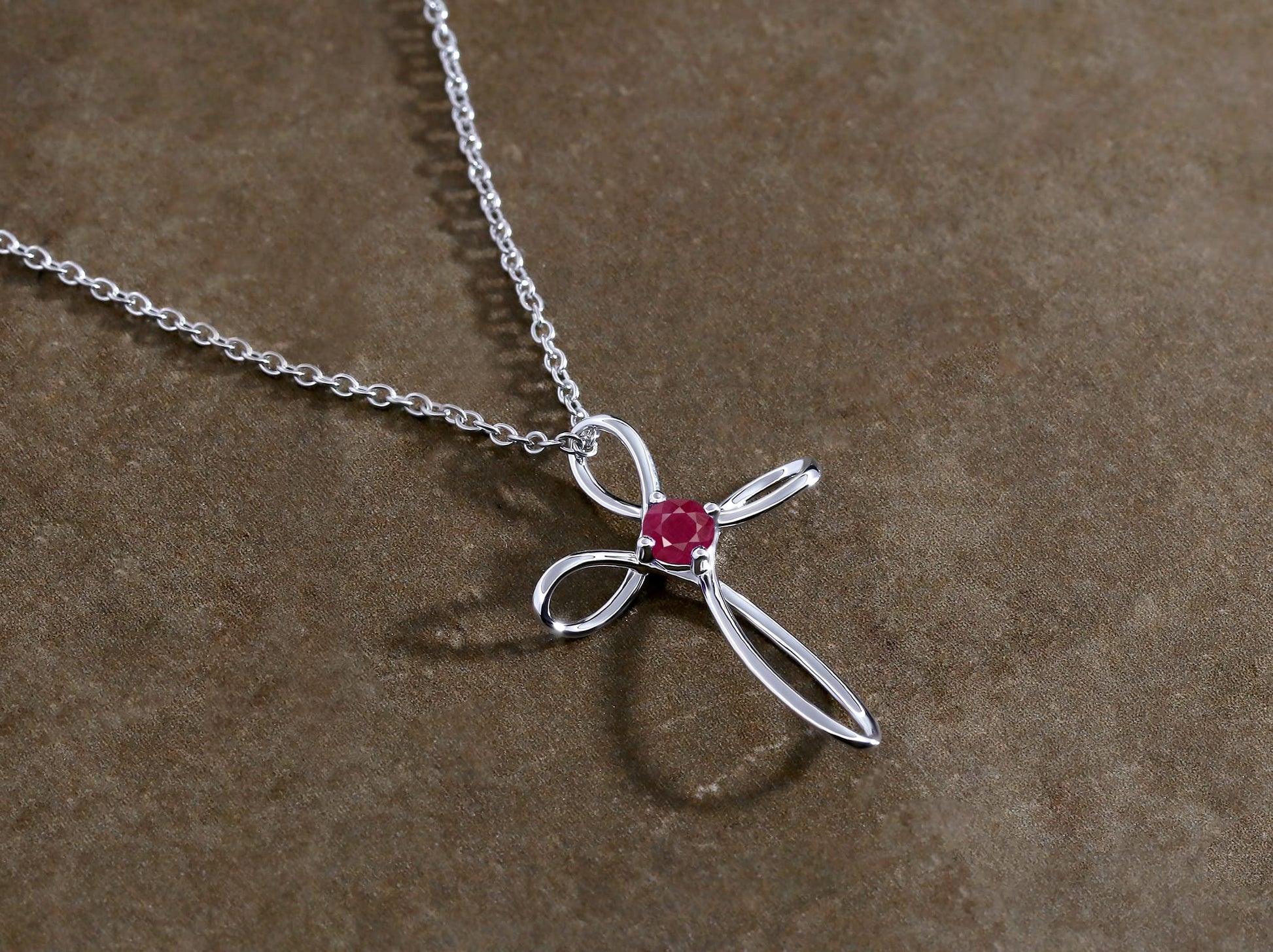 Dazzlingrock Collection 4mm Round Ruby Solitaire Twisted Criss Cross Pendant with 18 inch Silver Chain for Women in 18K White Gold