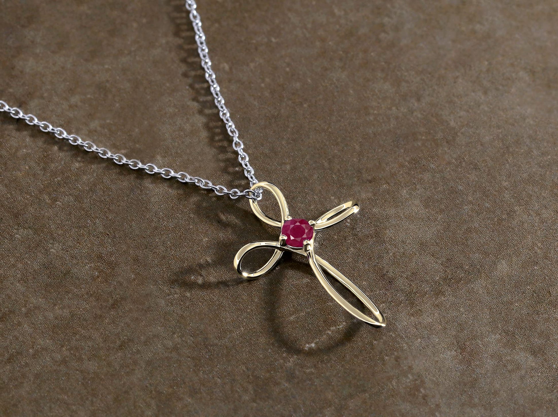 Dazzlingrock Collection 4mm Round Ruby Solitaire Twisted Criss Cross Pendant with 18 inch Silver Chain for Women in 18K Yellow Gold